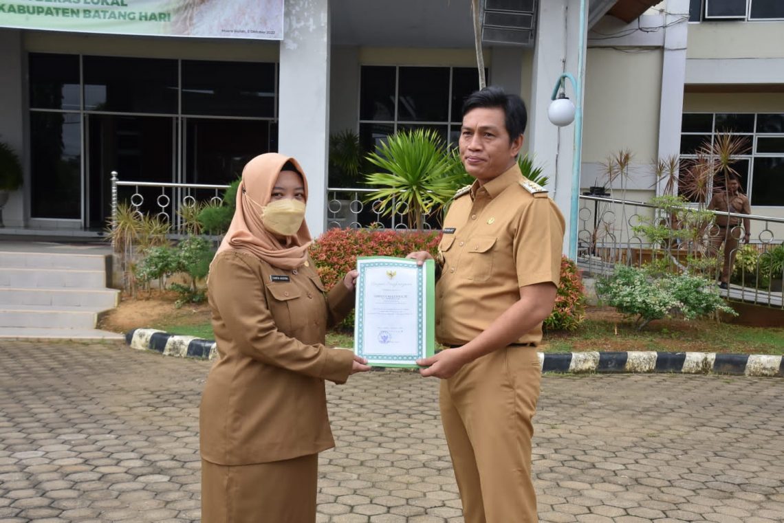 Pemberian penghargaan berupa piagam tersebut dilakukan saat apel gabungan OPD yang dilaksanakan di Halaman Kantor Bupati Batanghari.