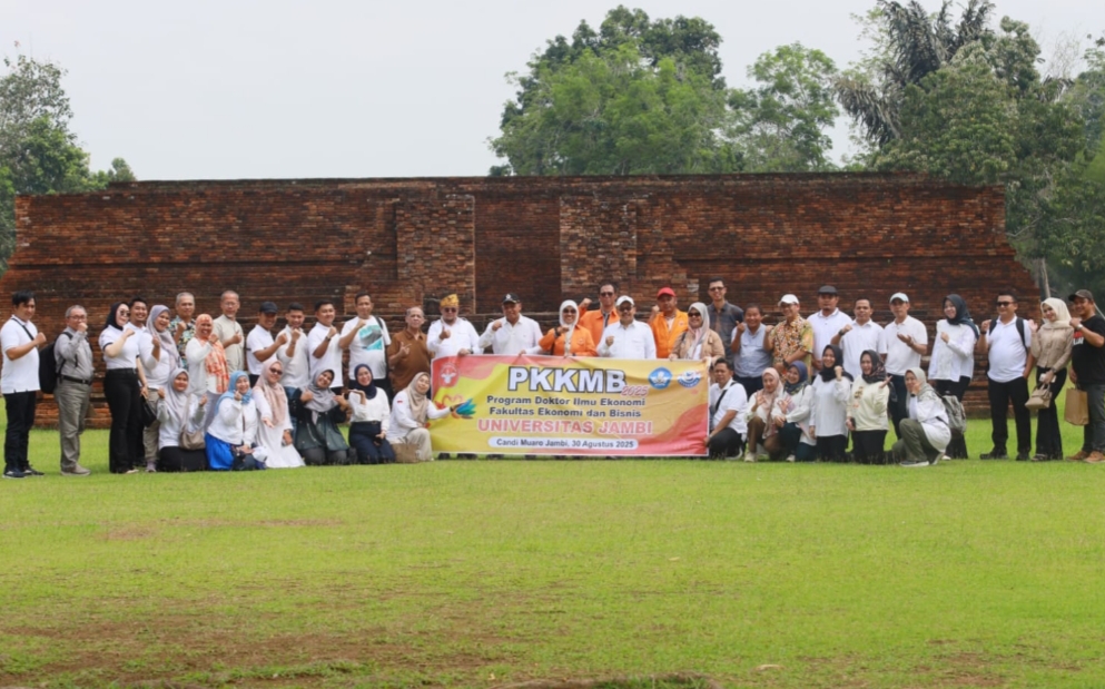 Jambiday.com, MUARO JAMBI– Puluhan mahasiswa program Doktor Universitas Jambi (Unja) menggelar kuliah lapangan di Kompleks Percandian Muaro Jambi, Sabtu (30/8/2025). Sekaligus menggelar PKKMB (Pengenalan Kehidupan Kampus bagi Mahasiswa Baru) Program Doktor Ilmu Ekonomi Fakultas Ekonomi dan Bisnis UnJa.