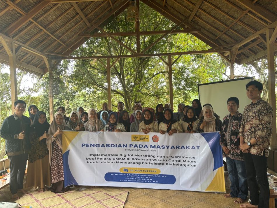 Jambiday.com, MUARO JAMBI- Di tengah geliat transformasi digital dan pesatnya perkembangan pariwisata berbasis budaya, Fakultas Ekonomi dan Bisnis (FEBI) Universitas Jambi mengambil langkah strategis melalui kegiatan Program Pengabdian kepada Masyarakat (PKM) bertema “Implementasi Digital Marketing dan E-Commerce bagi Pelaku UMKM di Kawasan Wisata Candi Muaro Jambi dalam Mendukung Pariwisata Berkelanjutan.”