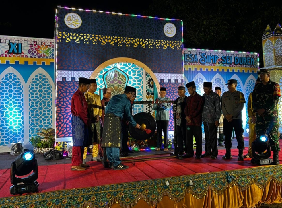 Pembukaan MTQ ke-11 tingkat Desa Simpang Sungai Duren ditandai dengan pemukulan gong oleh Camat yang didampingi unsur Forkompinda tingkat kecamatan. (ARS)