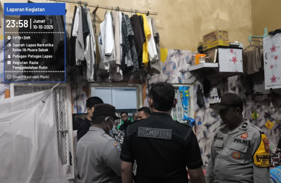 Jambiday.com, TANJAB TIMUR-Lembaga Pemasyarakatan (Lapas) Narkotika Kelas IIB Muara Sabak kembali melaksanakan razia insidentil sebagai bentuk komitmen dalam menjaga keamanan dan ketertiban di lingkungan pemasyarakatan. Kegiatan ini dilaksanakan pada Jumat malam 10 Oktober 2025, dimulai sejak pukul 23.45 WIB hingga 00.45 WIB, dan dipimpin langsung oleh Kalapas Muhammad Askari Utomo.