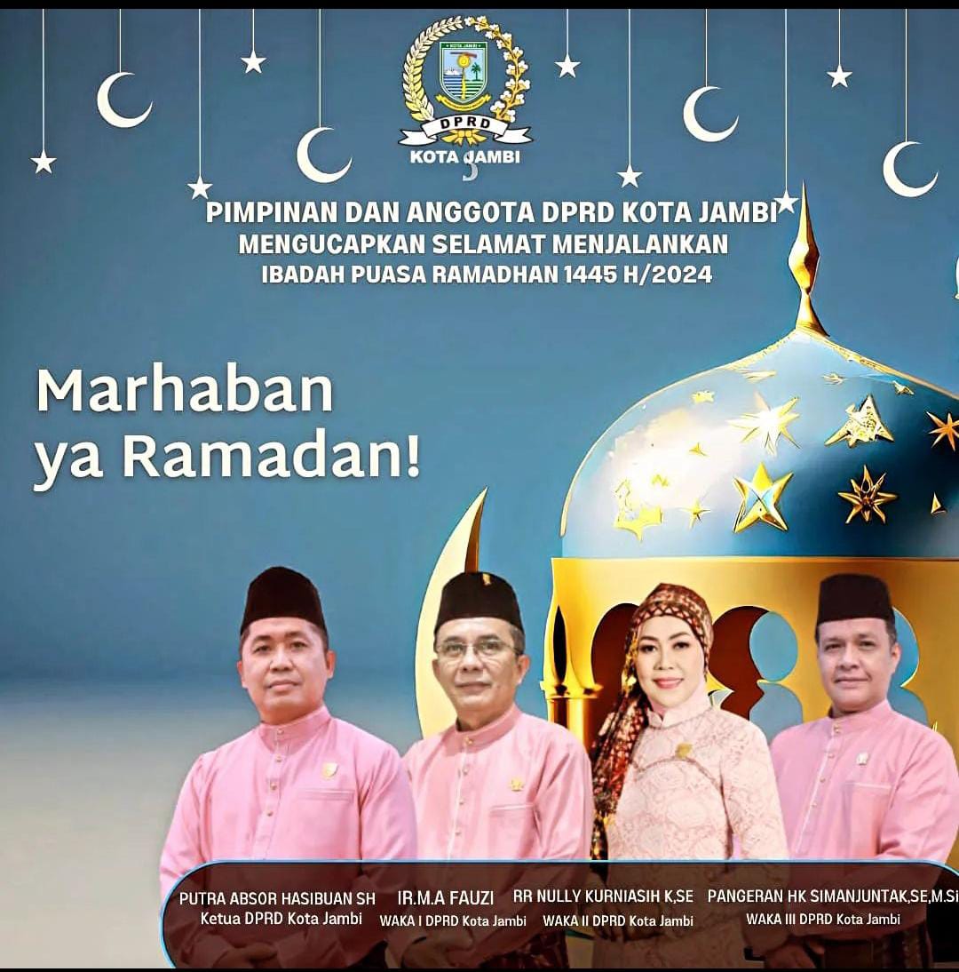 Jambiday.com, JAMBI- Mewakili 45 anggota DPRD Kota Jambi, para pimpinan DPRD Kota Jambi menyampaikan maaf lahir dan batin dalam rangka menyambut Bulan Ramadhan 1445 Hijriah. Disampaikan ketua DPRD Kota Jambi, Putra Absor Hasibuan, dirinya selaku pimpinan mewakili anggota dewan lainnya.