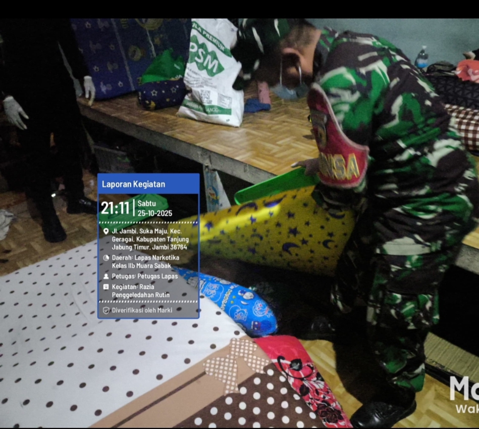 Jambiday.com, MUARA SABAK- Dalam upaya memperkuat deteksi dini dan menjaga keamanan serta ketertiban di lingkungan pemasyarakatan, Lembaga Pemasyarakatan (Lapas) Narkotika Kelas IIB Muara Sabak kembali melaksanakan razia insidentil di area hunian warga binaan, Sabtu malam (25/10/2025).